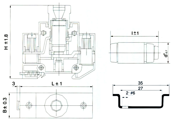 | 额定电流A | 配用熔断体 | L mm | B mm |
